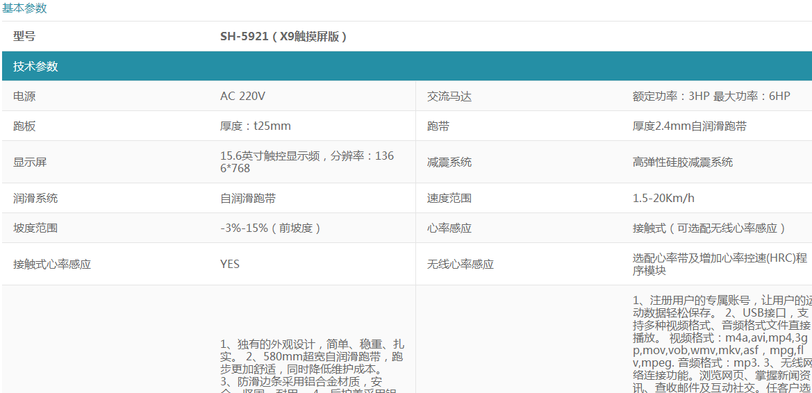 SH-5921(X9觸摸屏版)商用跑步機(jī) 15.6英寸觸摸顯示屏 自潤(rùn)滑跑帶